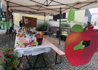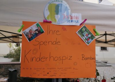 Im Rahmen dieser Aktion gestaltete die Schulfamilie einen Stand und sammelte Spenden für das Kinderhospiz „Sternenzelt“ in Bamberg. Insgesamt erzielten die Kinder mit ihren selbstgebastelten Sachen rund um den Apfel beachtliche 1155,57 €.