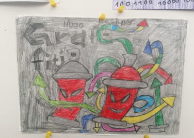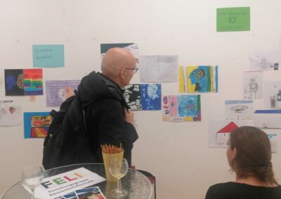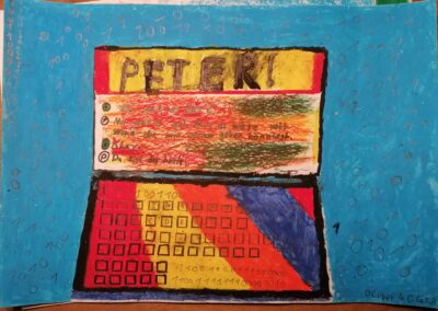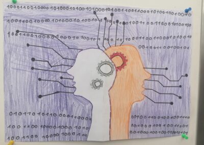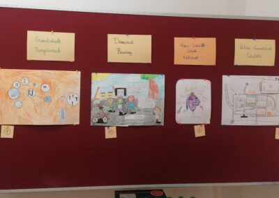 Unser Kooperationspartner, die Forschungsgruppe Elementarinformatik (FELI) der Universität Bamberg, stellte vom 23.10.-05.11.2023 im Smartcity-Bürgerlabor Bilder, die u.a. unsere Grundschulkinder zum Thema Künstliche Intelligenz (KI) gemalt haben, aus.