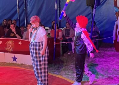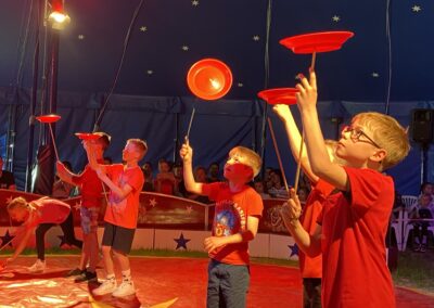 Am Ende präsentierten die Kinder ihr Können im Rahmen von vier Vorstellungen ihren Eltern, Verwandten, Bekannten in einer echten Manege im Zirkuszelt der Lauenburgers. Das Lampenfieber der – Akrobaten, Tellerdreher, Jongleure, Slackliner, Hula-Hooper, Clowns und Diaboloakrobaten – im Vorfeld war groß und sorgte für viel Spannung, die sich im Laufe des Auftritts in Stolz verwandelte.